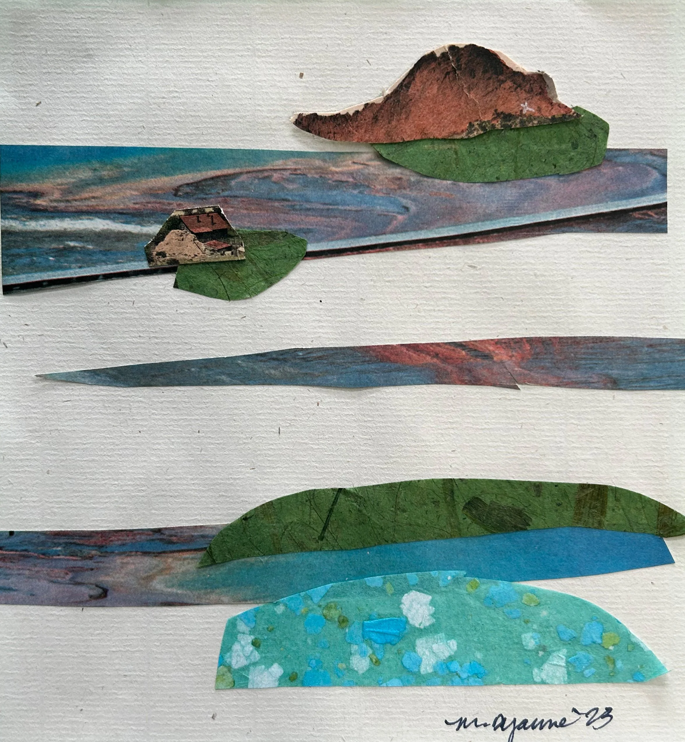 While I allow the images to evolve organically, these collages are indicative of my walks in nature, sometimes drawing from my dreams as well. I believe this process enables me to tap into my subconscious, resulting in a blend of concrete and dreamlike imagery.